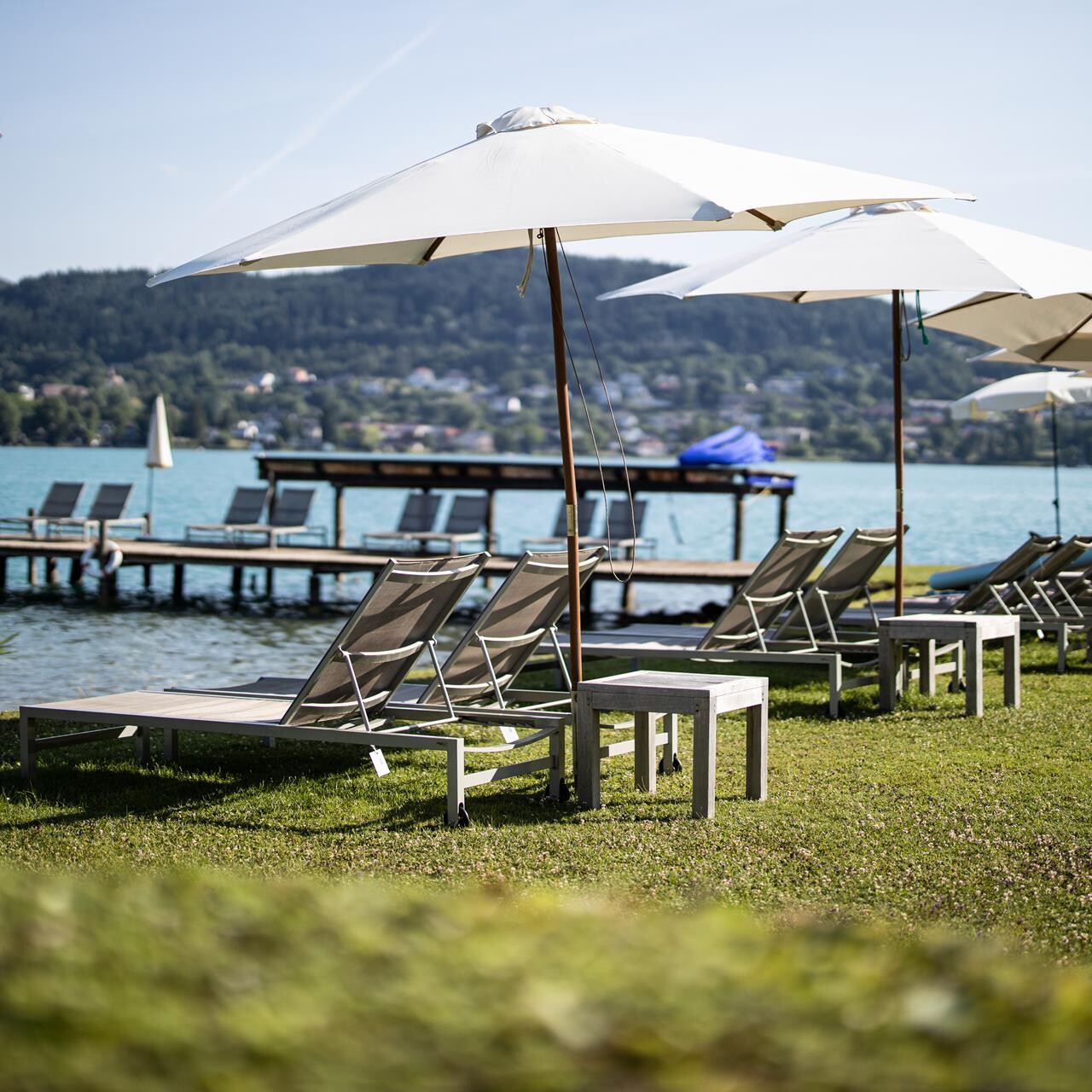 Der Wörthersee liegt Ihnen zu Füßen. Genießen Sie Sommertage an unserem privaten Badestrand, starten Sie direkt ab Hotel mit der hauseigenen Wasserskischule oder finden Sie Ihre Balance beim Yoga am Steg.